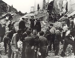 ![]() Children in gas masks | ![]() Chaters School making Ration Cards | ![]() Books for Salvage | ![]() Bomb damage Weymouth Street | ![]() Bomb damage Weymouth Street | ![]() Bomb damage Tudor Avenue Nov 1940 |